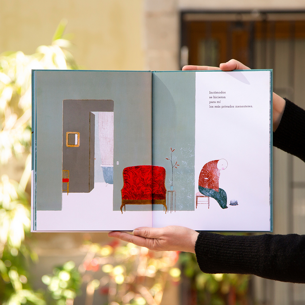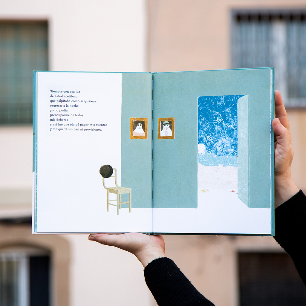 Érase un poeta en una ciudad cualquiera de altos edificios. El poeta miraba más arriba, a la noche estrellada, y de tanto quererla consiguió un imposible: se apoderó de una estrella. La escondió en su casa lo mejor que pudo, pero su brillo palpitante le delataba… La hermosa oda de Pablo Neruda adquiere una relevancia especial enmarcada en un álbum en el que los versos dialogan con las serenas ilustraciones de Elena Odriozola. Las imágenes poéticas, que en cada lector despertarán su propio eco, sugieren la necesidad de aspirar a los sueños y consiguen contrastar la estrechez mediocre de la vida urbana frente a la libertad que se puede encontrar en la naturaleza.
