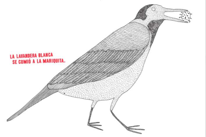 «Nació una flor, los pulgones se comieron la flor, la mariquita se comió a los pulgones, la lavandera blanca se comió a la mariquita, el zorro se comió...».